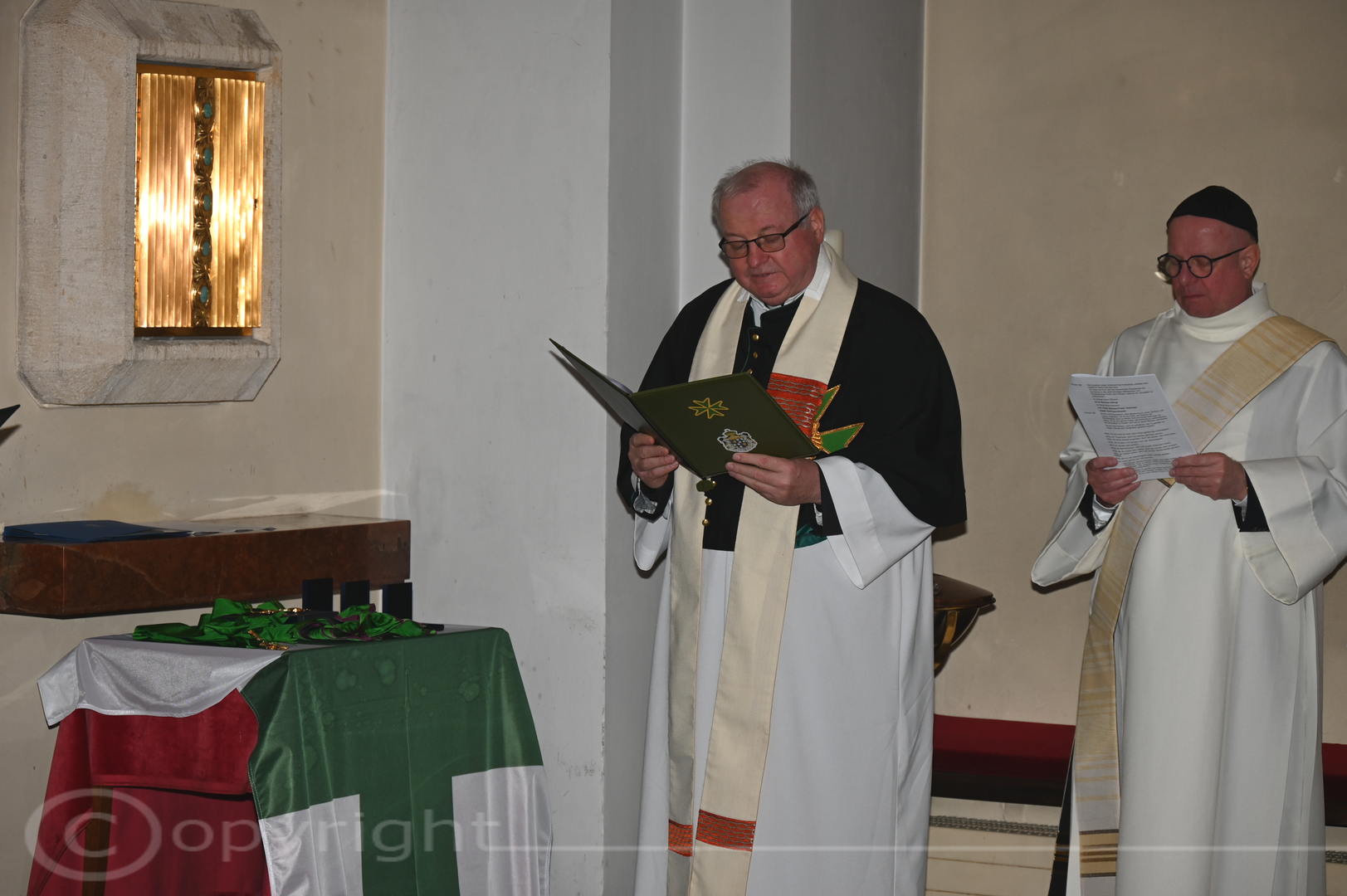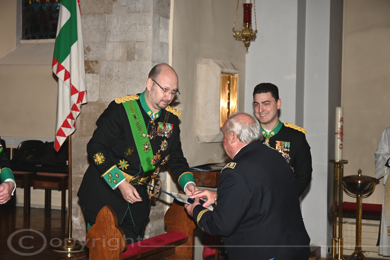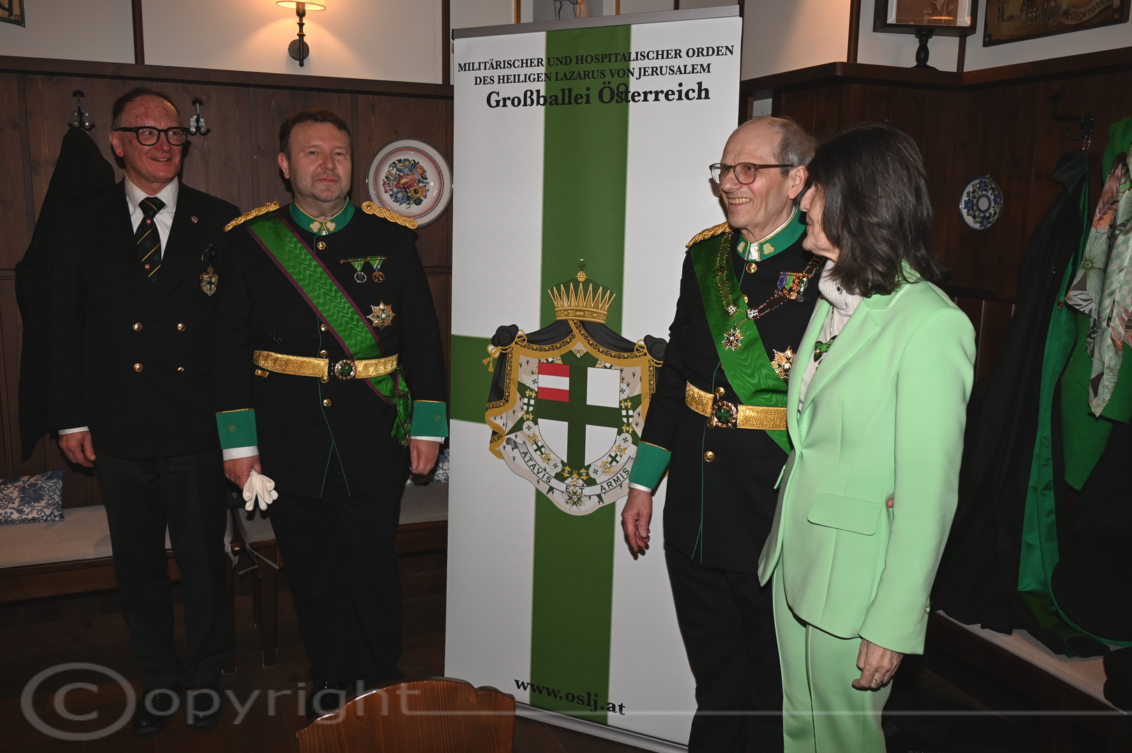 Eine besondere Ehre für die Investitur der beiden österreichischen Jurisdiktionen warendie vom Großmeister S.H. Don Francisco de Borbón Graf von Hardenberg schriftlich übermittelten Grußworte. Zum Abschluss des vom Geistlichen Prior der Großballei, Propstpfarrer Kan. P. Lorenz Voith, CSsR geleiteten ökumenischen Investiturgottesdienstes wurden vom Erbkomtur noch mehrere ausländische Ordensgeschwister und Gäste geehrt, bevor die Investitur bei einem gemeinsamen Abendessen ausklang (siehe auch den ausführlichen Bericht unter Die Großballei/News).